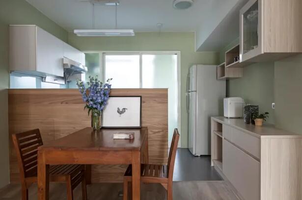 這時用簡單的柜子就能區隔出空間,能保留空間穿透感,也能坐下來好好吃頓飯!