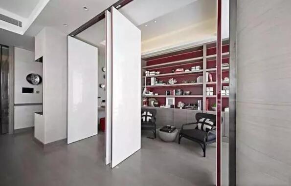 我們看了旋轉門所用到的天地軸,活動隔斷用到的滑軌和滾輪,那么如果將這兩種五金構造加上門扇合頁組合在一起會是什么效果呢?
