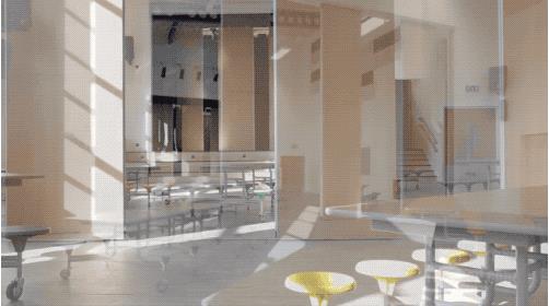 每塊活動墻面板采用復合輕質結構制作而成,并由一個吊頂承重軌道和一個地面嵌入式軌道固定。而且,在吊頂軌道里內置了智能化滾輪驅動器,它能夠帶動每一塊墻自由移動。同時,分隔樣式也非常靈活,移動軌道可以是直的,也可以是彎的。使用起來也非常方便,墻面上裝有一個觸控面板開關,點一下屏幕上的按鈕,系統(tǒng)就會自動啟動。