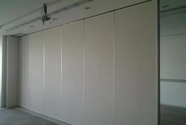 活動隔斷墻的軌道是安裝在天花板上,而地上其實是無軌道的,這種無地面軌道懸掛,反而非常穩固可靠。活動隔斷墻一般采用PAR吸聲玻璃纖維作隔音棉,有著很好的隔音效果。