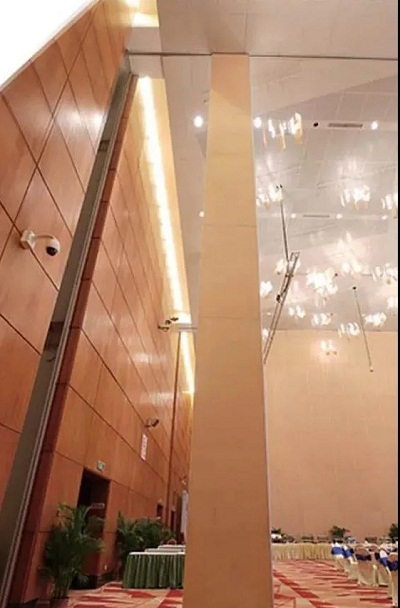 特高類型(標高9m-18m)即可稱為超高型隔斷,是眾多高星級酒店常用的活動隔墻系統,特高隔斷可以起到有效分割宴會廳,會議中心的空間,做到一廳多用,且互不干擾的用途。